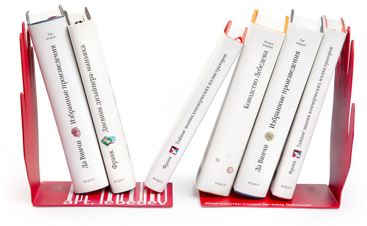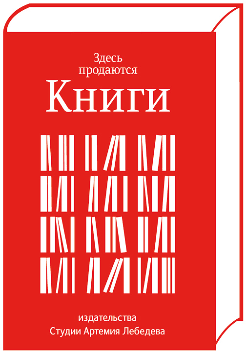Чтобы привлечь внимание посетителей книжных магазинов к студийными изданиям, Артемий Лебедев со своей командой придумали оформление полки на которой должны стоять книги его студии, а так же сделали наклейку на дверь "Здесь продаются книги Студии Артемия Лебедева".