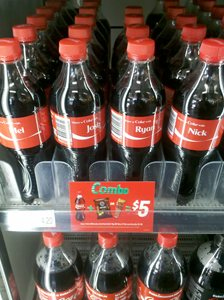 Вообще, на этикетках написано «Share a Coke with [имярек]». Имена – Ник, Мел, Джош, Люк, Джессика и т.д. С помощью такого маркетингового хода Coca-Cola пытается найти свежий способ общения с покупателем. По всей видимости, предполагается, что люди охотней будут покупать бутылки, на которых увидят свое имя. Кампания пока тестируется, официального запуска еще не было, поэтому именные бутылки можно увидеть лишь в нескольких магазинах, а в России, понятно, нельзя.