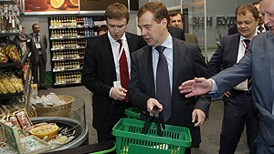 Президент России Дмитрий Медведев увидел магазин будущего, где товары маркируют не обычными штрих-кодами, а метками радиочастотной идентификации.
